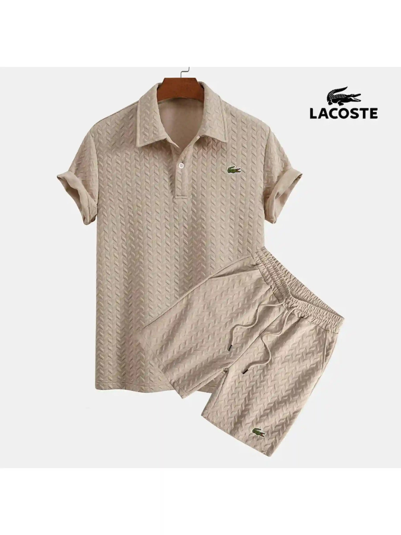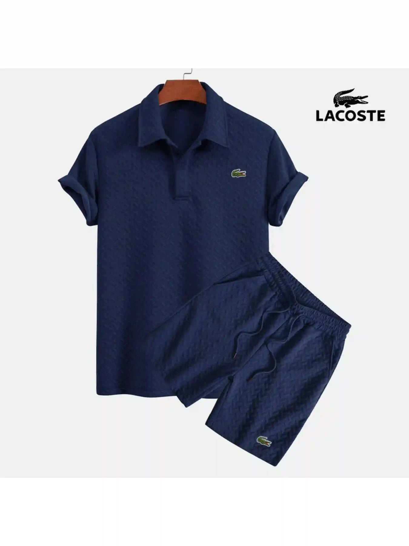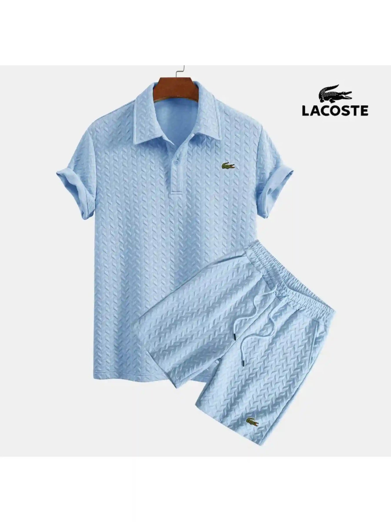 Experience a new standard of coordinated leisure with the Azure Lattice Polo & Short Set. Both pieces are engineered from a premium technical fabric featuring an intricate diamond-lattice knit pattern, which provides superior tactile depth and a sophisticated visual profile. This specialized open-weave construction is designed for maximum breathability, ensuring you remain cool and collected whether you’re navigating the city or lounging seaside.